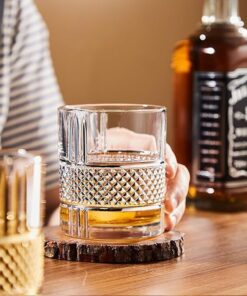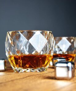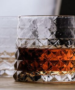 Whisky glasses are shaped to enhance the experience of drinking and nosing whisky. The most popular glasses feature a bulbous body shape which allows aromas to collect and be directed through a narrow rim.