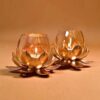 Crystal Candle Holder Moon Shaped, Metal Lanterns, Diwali Puja Home Decor Item Diya TeaLight Return Gifts for Pooja, Wedding, Ramadan, Housewarming, Table Decor (PackOf2)